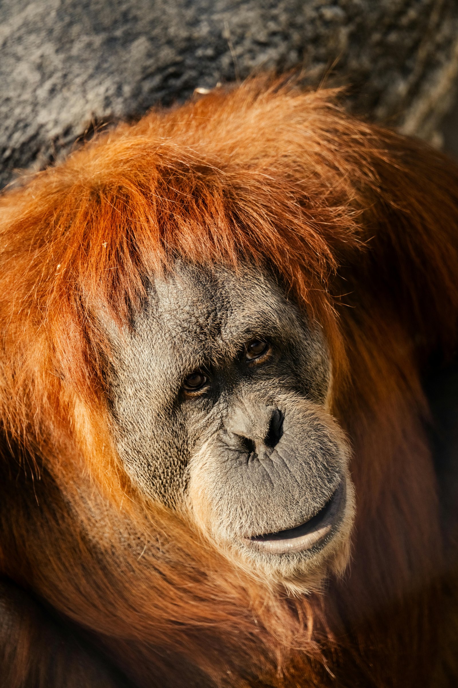 Orangutans are the most solitary of the great apes. While chimps and gorillas live in large social groups, adult male orangutans spend about 90% of their time alone. They have an incredible reach; an adult male's arm span can be up to 7 feet (2.2 meters) from fingertip to fingertip—longer than they are tall! This allows them to bridge gaps between trees in the canopy without ever having to touch the ground.