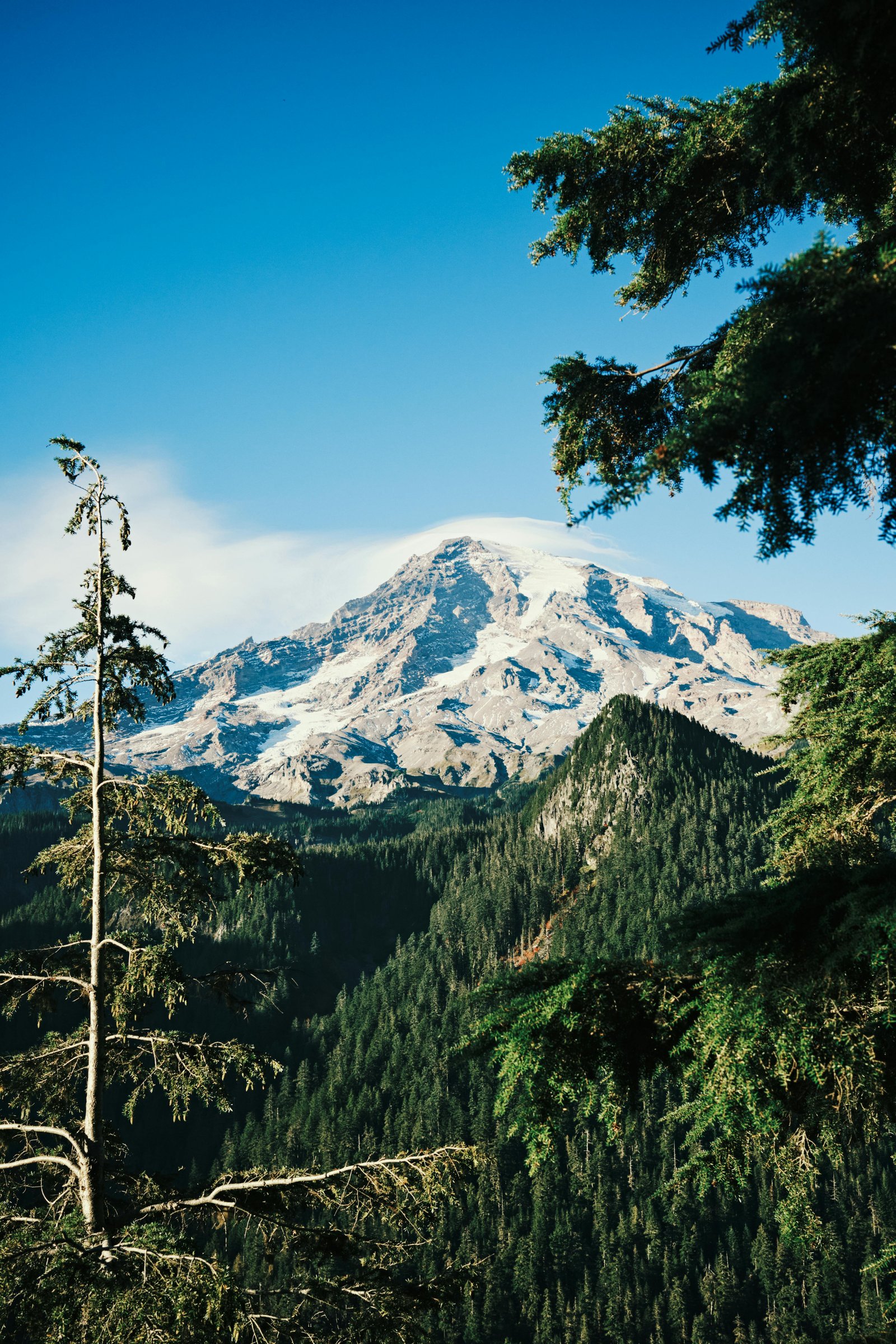 Mount Rainier is a majestic, active stratovolcano in Washington's Cascade Range, the highest peak in the contiguous U.S. (14,410 ft), famed for its vast glaciers, volcanic cave system, stunning wildflowers, and status as an iconic landmark visible from Seattle.